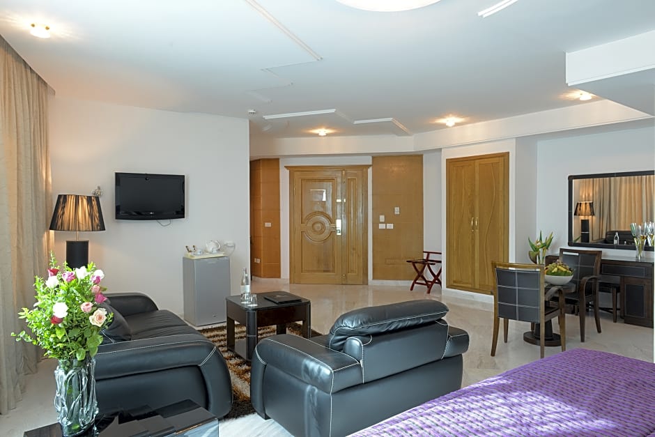 Guests will have a special experience as this suite offers a pool with a view. Featuring a private entrance, this spacious suite also is consisted of of 6 bedrooms, a seating area and 6 bathrooms with a bath and a bidet. The fully equipped kitchen features a stovetop, a refrigerator, an oven and a tea and coffee maker. This air-conditioned suite comes with a dining area, a flat-screen TV with cable channels soundproof walls and a terrace. The unit offers 6 beds.